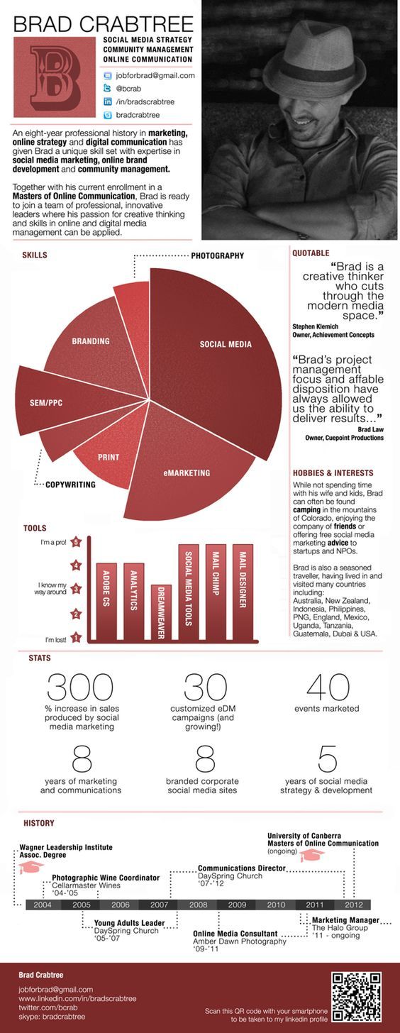 However, if done right, the infographic resume can be a great asset in a pool of job seekers that is getting more and more crowded. We have gathered some examples that show infographic resumes done right.