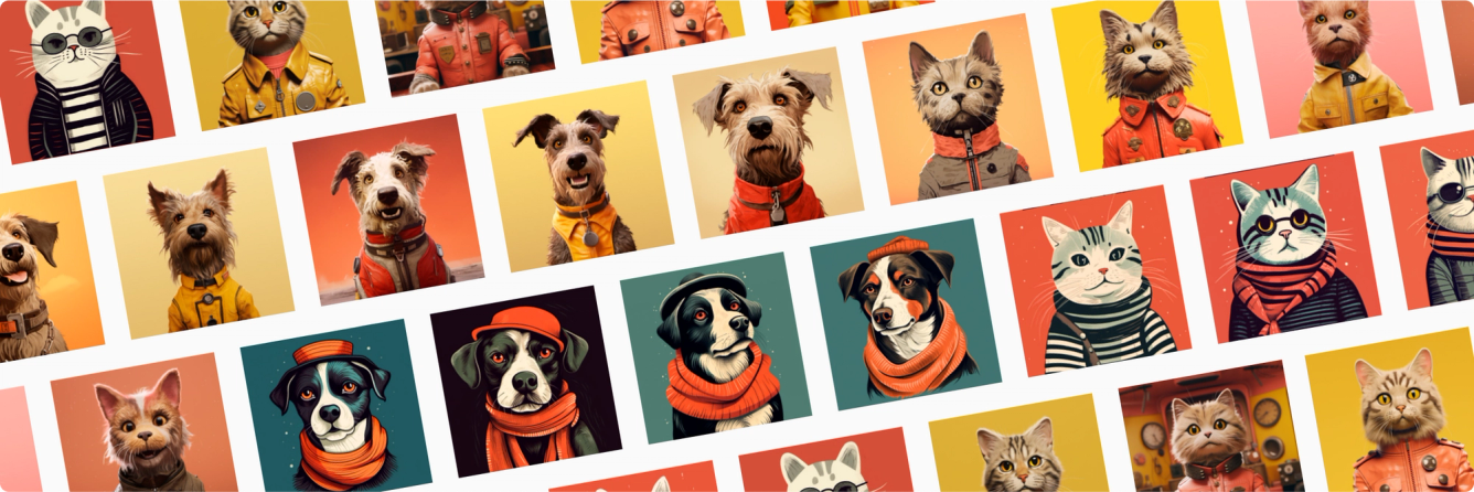 How do you go from zero to a collection of 750+ different illustrated pet images? Because IPG had a limited number of design hours to invest and there was a significant exploration component, this project was an ideal fit for leveraging AI.