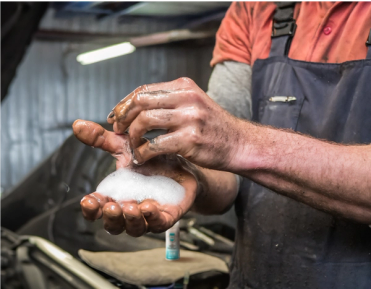 - Mechanics cleaning their hands after work