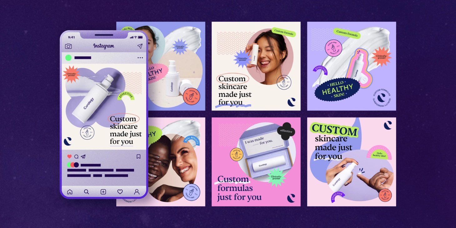 Curology produce a high volume of creative variations for social media ads using Superside.