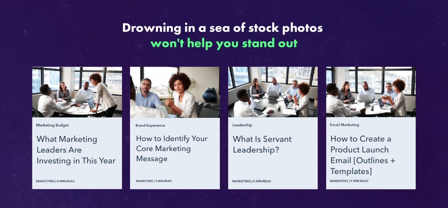 But you can run into other unanticipated problems if you execute without a design strategy, such as trying to build your brand through content marketing but using stock photography throughout your blog.