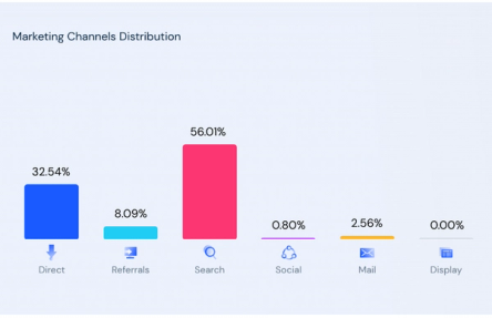 - More than 56% of their traffic comes from search engines—Ahrefs supports this analysis with a domain rating of 73