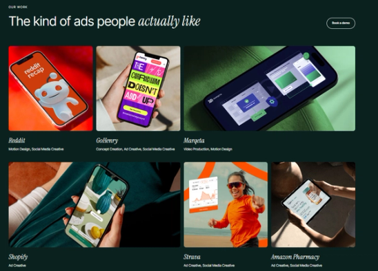 As the number-one AI-powered creative company for enterprises, we help in-house teams at brands like Amazon, Reddit and Salesforce scale high-performing creative faster and more cost-effectively than traditional agencies.