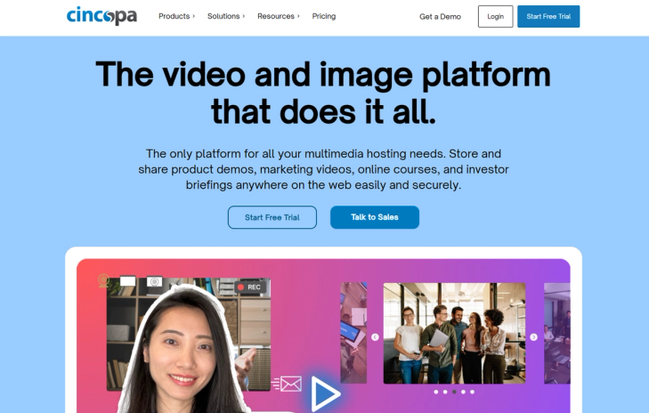 - What we like: Cincopa provides tailored solutions for eLearning, eCommerce and sales departments.
