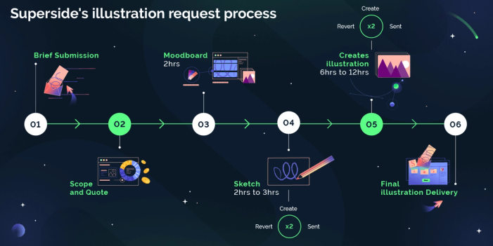 Take, for example, Superside’s approach to DesignOps for an illustration project: