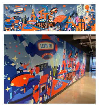 But it also includes over a dozen easter eggs for employees to spot, showcasing their unique culture in a playful way, bringing a sense of unity and pride into their workspace. (Can you spot the Mario Cart reference?)
