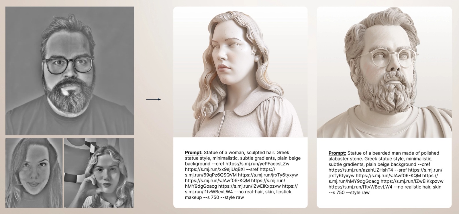 A unique concept emerged through collaborative sessions: merging classical art elements with futuristic AI-generated designs. This concept was inspired by the juxtaposition of old and new—using marble sculptures as a metaphor for AI's potential to create something as enduring and impactful as the masterpieces of the Renaissance.