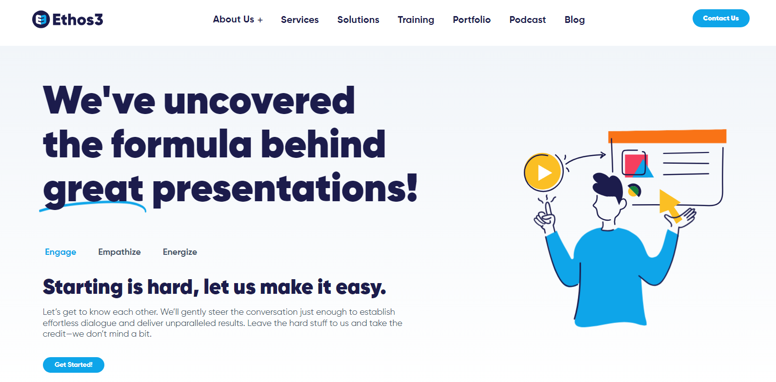 Ethos3 has been crafting award-winning PowerPoint presentations since 2006. Their work is values-driven, based on what they call the Ethos3 Formula.