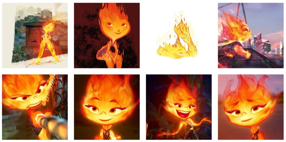 Pixar’s 2023 film Elemental features a character made of fire named Ember. Director Peter Sohn wanted the character to have swirling, fluid flames around her.