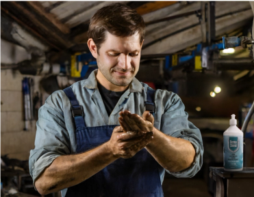 - Mechanics cleaning their hands after work