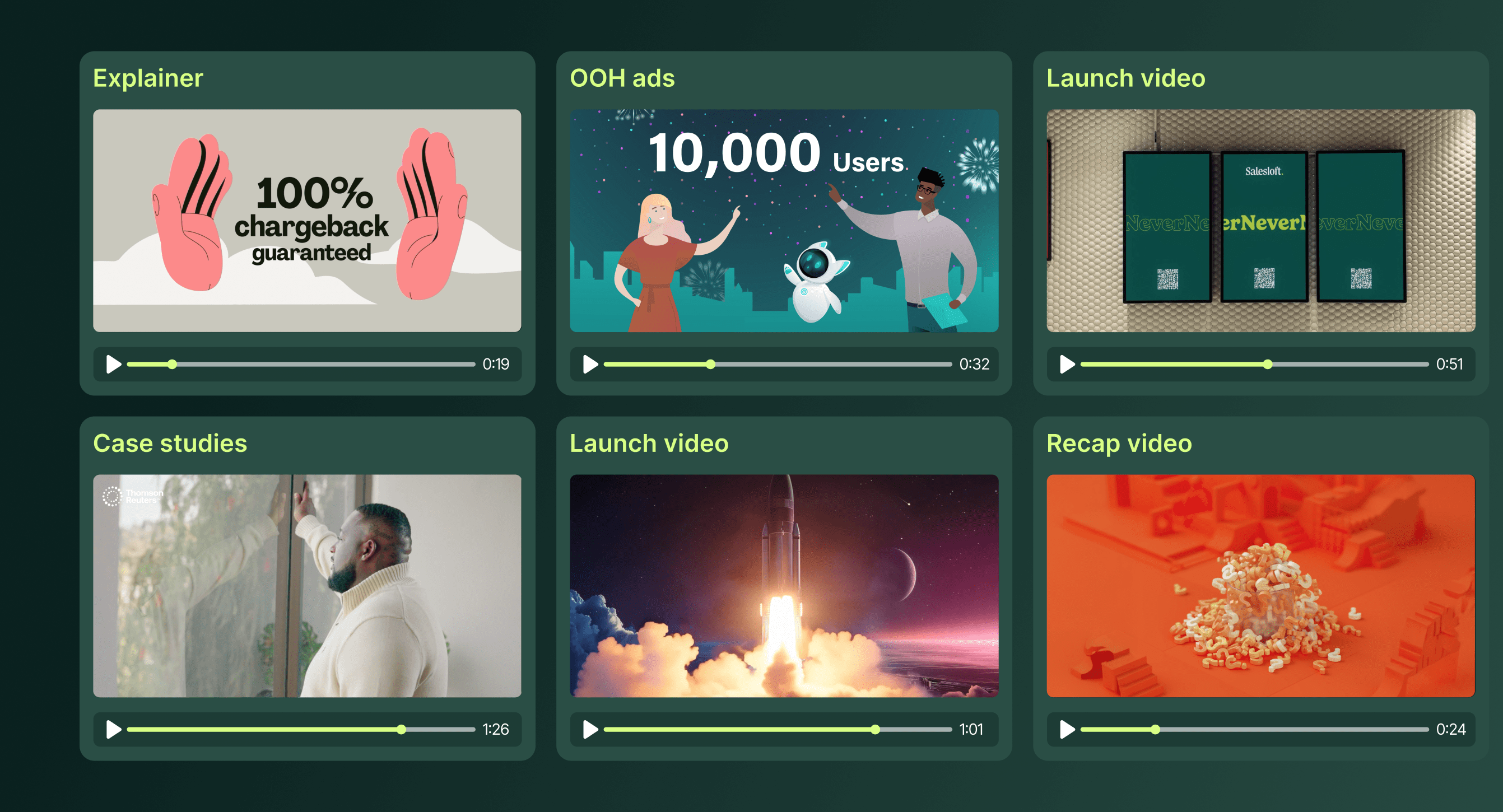 The SaaS leaders featured here create crystal-clear explainers, fun-to-watch demos, standout product launch videos, authentic testimonial videos and company highlight reels that win and retain customers. They then amplify these assets across multiple channels for maximum impact.