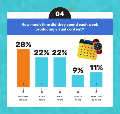 In fact, after surveying over 200 marketers, Venngage found that 11% of marketers spend more than 20 hours per week producing visual content. Furthermore, 49% of marketers said that creative marketing design is essential to their marketing strategy.