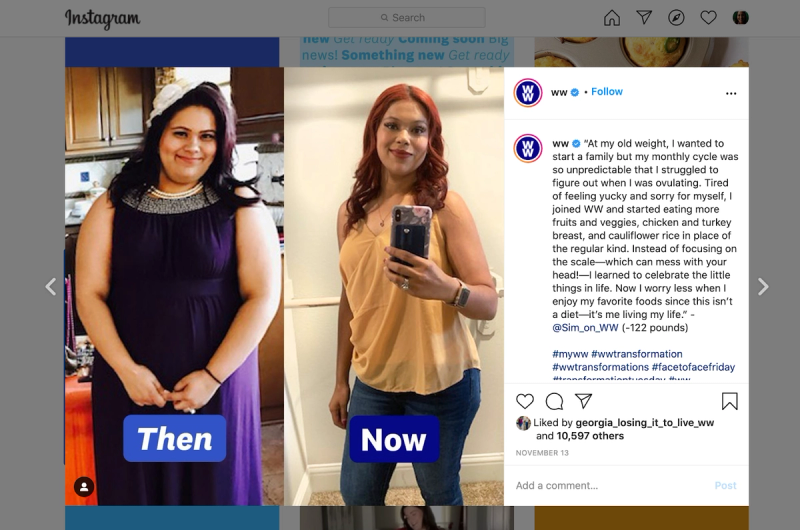 A great brand that does this is WW (formerly Weight Watchers). Throughout their feed, they share customer stories on how their product helped customers change their lives. They don’t need high-quality photos, just simple, on-brand design and real images by real people.