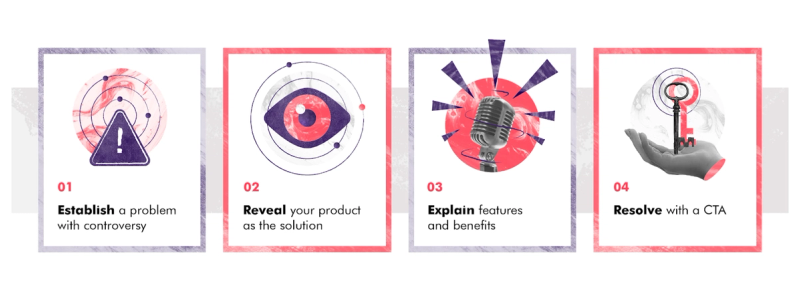 Some people take a shortcut and lop off the first step: establishing the problem. Only do this if the problem you’re solving is well-known among your audience. If you’re still educating your audience about the problem your product is solving, we don’t recommend taking this shortcut.