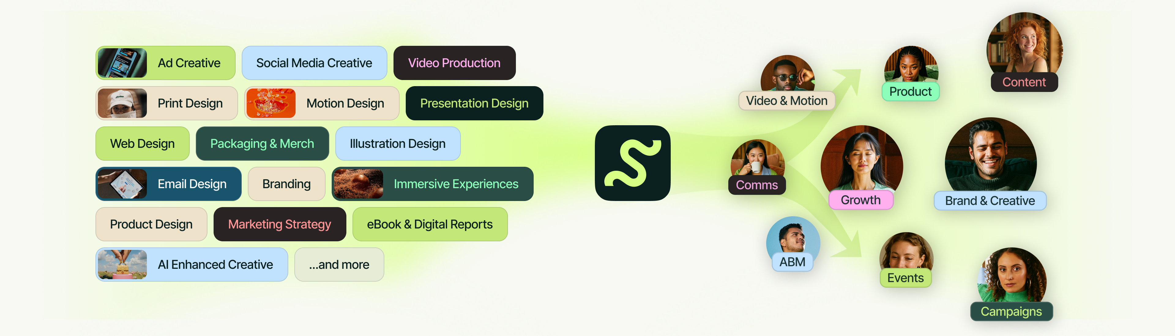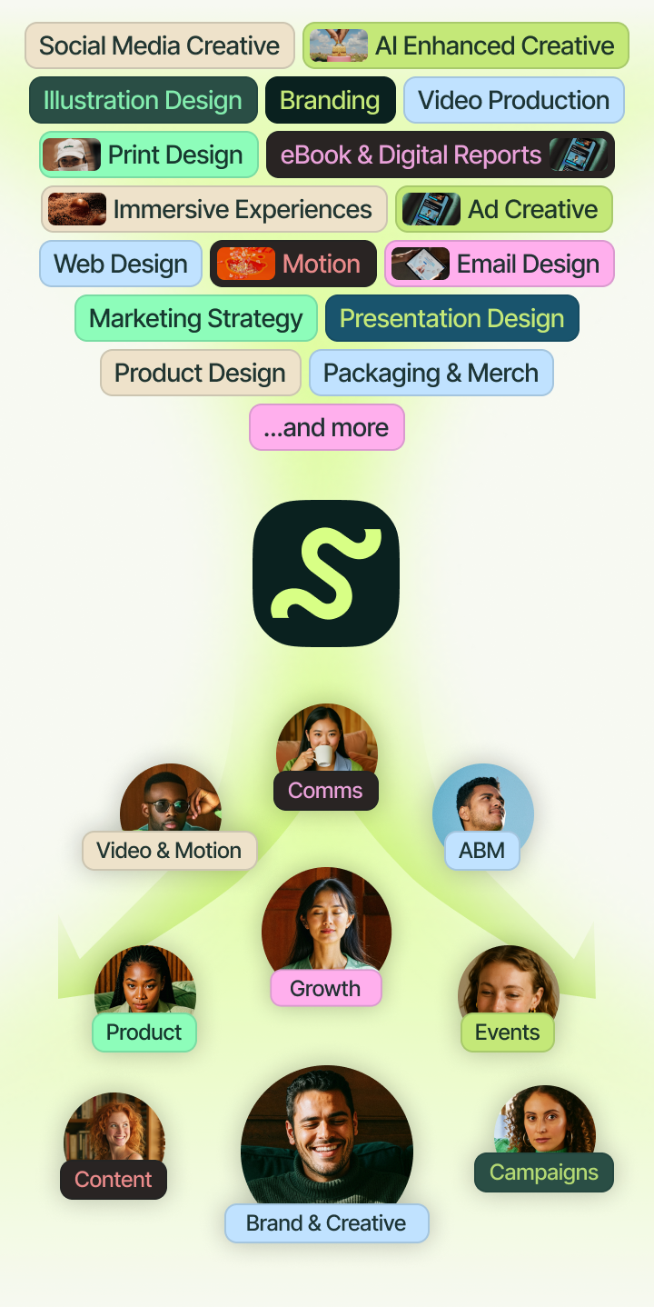 Move fast with 15+ scalable creative services, fuel results across every marketing team